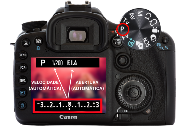 - Em P, a câmara vai reorganizar abertura e velocidade conforme a leitura.
