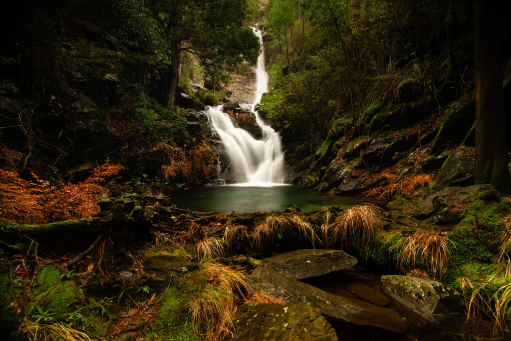 Em quedas de água, tempos demasiado longos podem fazer desaparecer completamente a textura da água. Aqui, os 10 segundos ajudaram a preservar a sensação de fluxo natural, respeitando o carácter do local.