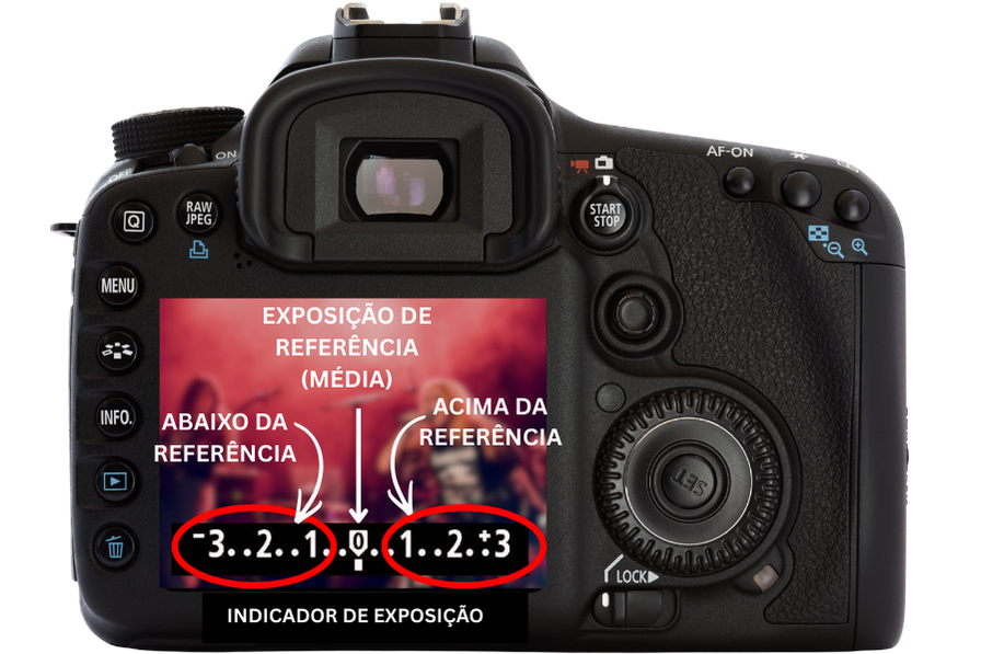 O indicador de exposição mostra-te onde estás em relação à referência do fotómetro: