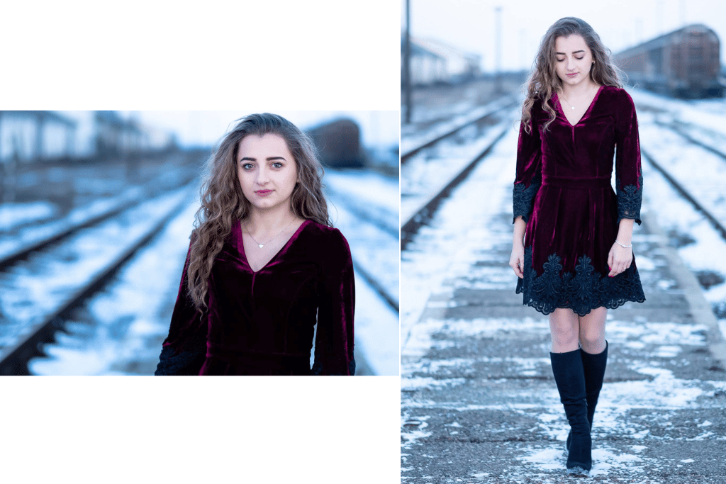 - A paisagem ferroviária ganha importância, enquadrando o retrato num contexto urbano e frio.
